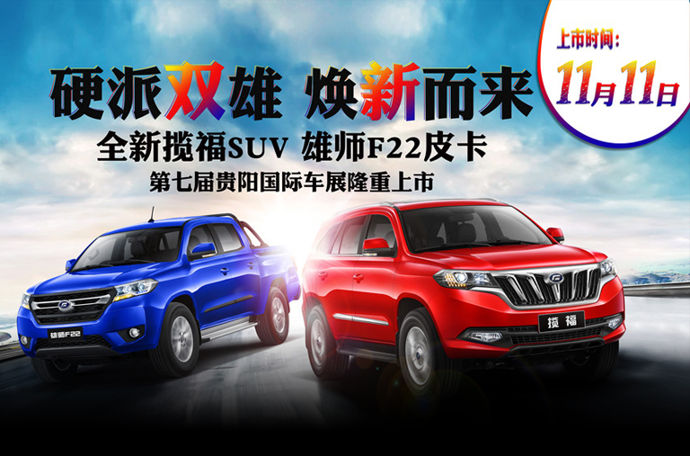 11月11日第七屆貴陽國際車展上,福迪汽車旗下攬福SUV與雄師F22國五全系正式上市發布,至此,攬福SUV與雄師F22皮卡手動、自動全系列…